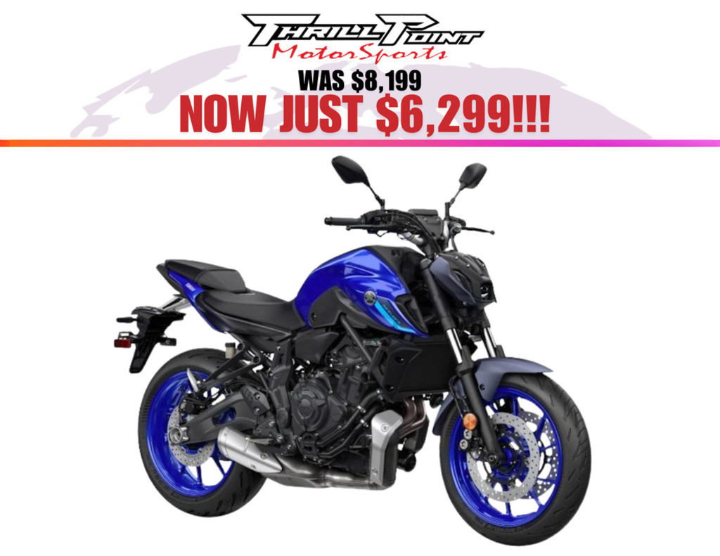 The MT-07 features the compact 689cc liquid-cooled, inline twin cylinder, DOHC CP2 engine with fuel injection. The fun and characterful CP2 engine provides both outstanding low- to mid-range torque and strong high-rpm pulling power. Fuel injection settings are optimized for seamless, linear throttle response characteristics, even when the throttle is slightly open at low rpm.
