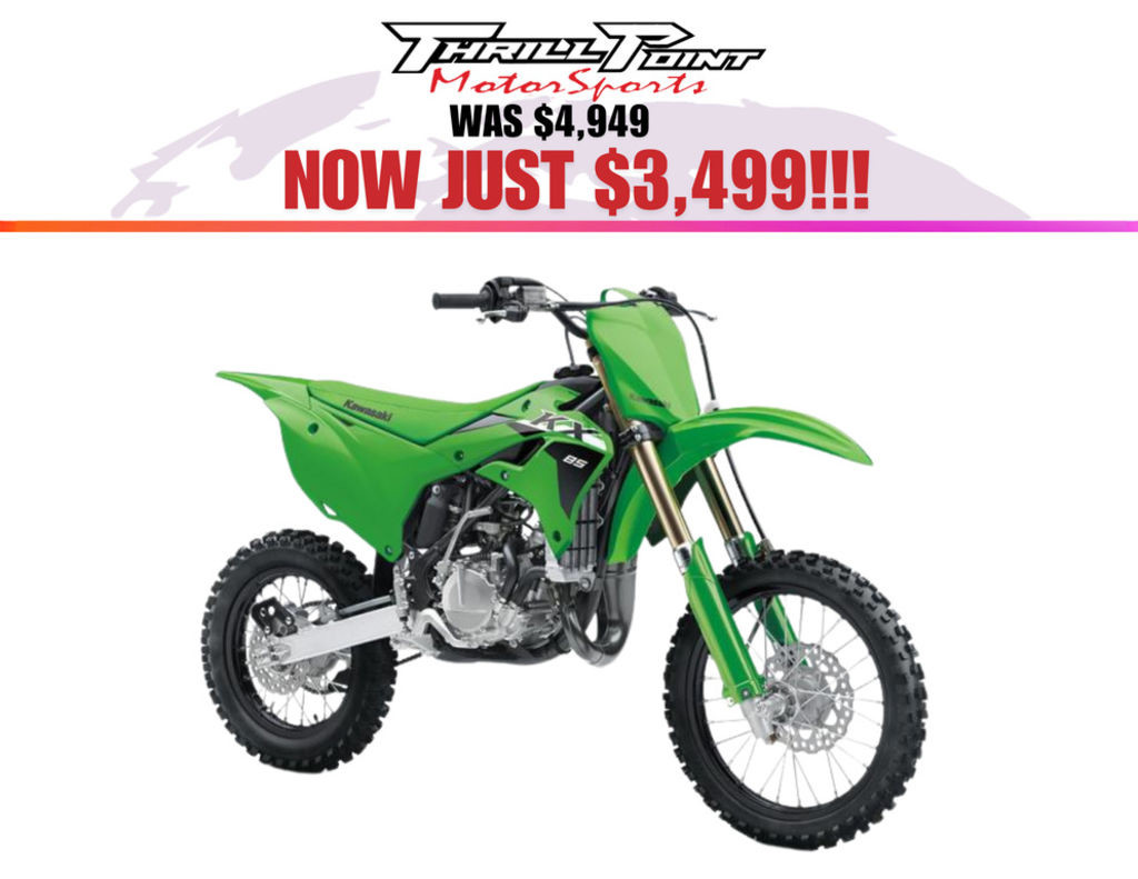The KX™85 motorcycle brings Kawasaki's proven performance to the amateur ranks. Proportionate power of the 84cc engine and race-ready technology grant young racers the championship-winning advantage they need to sharpen their skills.