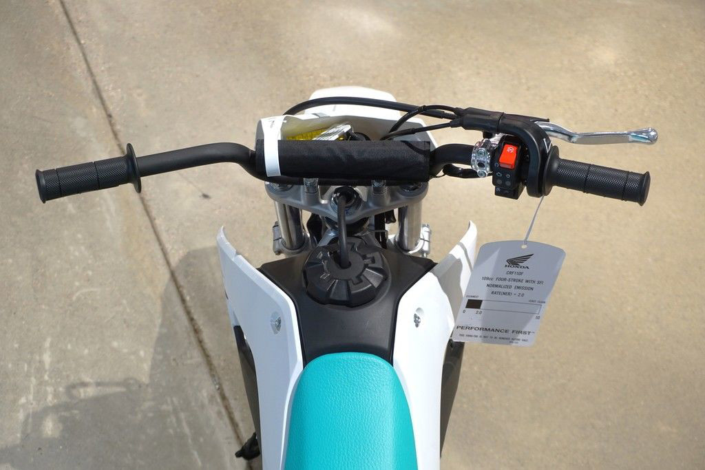 Push a button and go—that’s how easy it is to get going. The handlebar-mounted electric starter is one of the many features that make the CRF110F user friendly for riders of all ages and sizes.