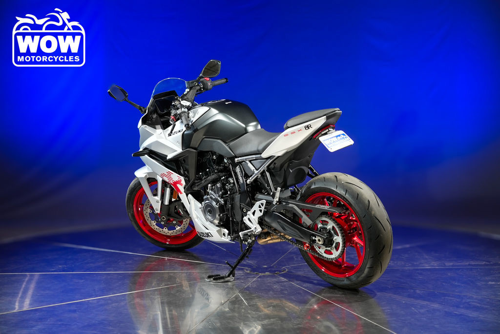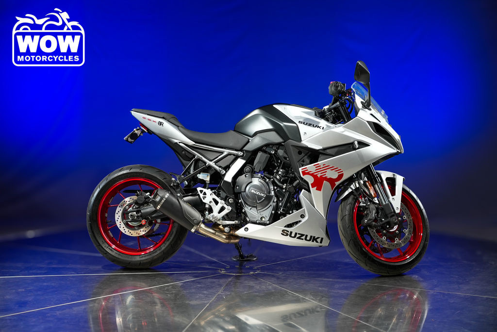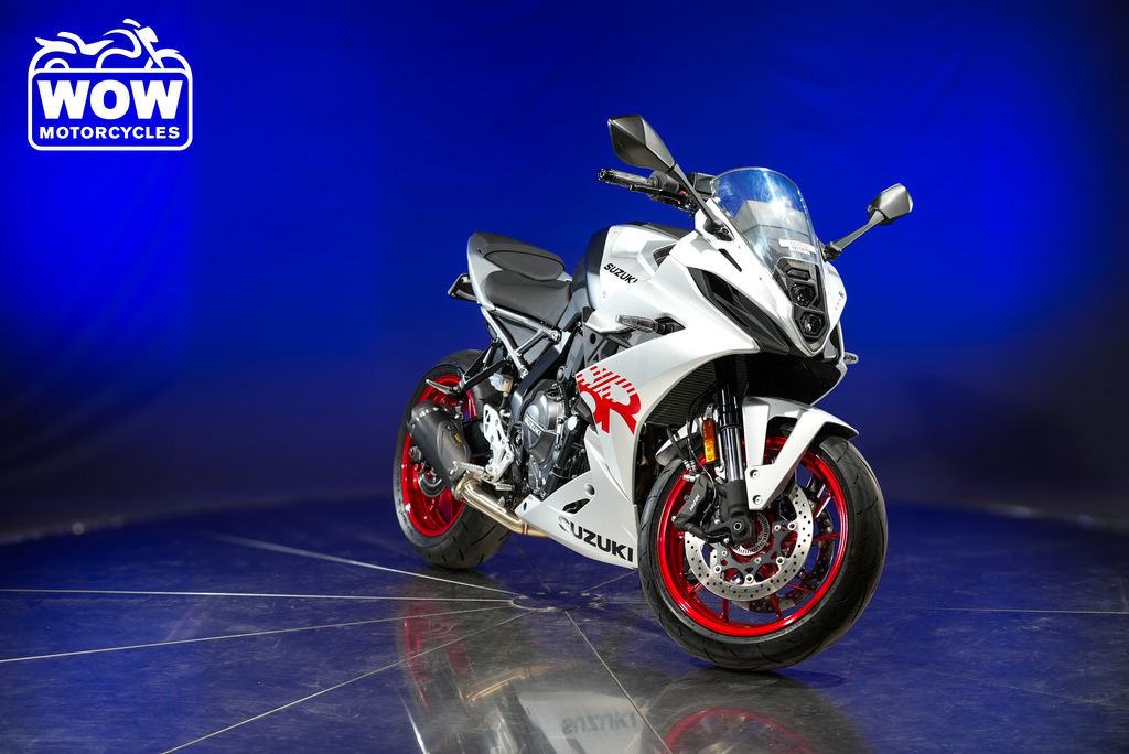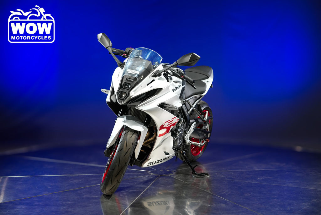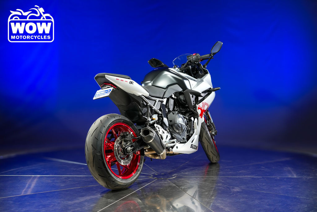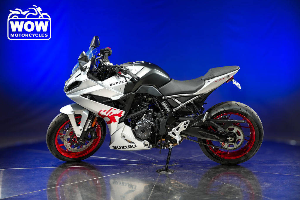 "A new era for sportsbikes, where superbike looks combine with real-world performance and usability. A punchy engine packed with torque, housed in an agile, responsive chassis, with performance enhanced by a sophisticated suite of electronics for an unrivalled experience on the road or track. One glance, and the cutting-edge sportbike styling of the GSX-8R immediately catches your eye. But it’s the sophisticated balance of power, handling, comfort and faithful response, and full control which draws you in. It’s a fine fusion of elements that invites all riders to a new world of riding pleasure, whether commuting or shopping in town, heading out for an exhilarating run through winding mountain roads, or testing your skills on the racetrack. From the sharp, clean design of the front face and fairing, to the slim profile of its rear section, every detail of the GSX-8R’s mass-forward aggressive stance and well-balanced proportions instantly convey performance potential. Exposed parts such as the seat rails and engine parts are painted to highlight the mechanical appeal of functional beauty. And bold graphics that employ iconic typography create a presence that is instantly recognizable and equally appealing. The 776cm3 parallel twin engine that powers the GSX-8R delivers a fine balance of smooth, controllable power and free-revving performance you will enjoy whether touring, enjoying a brisk ride, competing on the racetrack, or tackling errands around town. Designed to be powerful, efficient, rider-friendly and versatile, the engine features a 270-degree crank layout with a firing order that produces rich torque and positive traction, as well as a pleasing rumble and engine note similar to that of a V-twin engine. It also employs the Suzuki Cross Balancer, an innovative primary balancer design that contributes to smooth operation and the GSX-8R’s nimble handling. The engine’s compact front-to-rear size contributes to achieving optimum weight distribution and chassis geometry, while it also helps position the hip point forward to provide you with an optimal riding position. MSRP Price: $9,439 USD Engine: 776cc, 4-stroke, liquid-cooled, DOHC parallel twin Bore x Stroke: 0 mm x 70 mm (3.3 in. x 2.8 in.) Compression Ratio: 8:1 Fuel System: Fuel injection Starter: Electric Lubrication: Force-fed circulation, wet sump Clutch: Wet, multi-plate type Transmission: 6-speed constant mesh Final Drive: O-ring style drive chain, 525 x 118L Suspension Front: SHOWA inverted telescopic, coil spring, oil damped Suspension Rear: SHOWA link type, single shock, coil spring, oil damped Brakes Front: NISSIN, Radial-mount 4-piston calipers, twin disc, ABS-equipped Brakes Rear: NISSIN, 1-piston caliper, single disc, ABS-equipped Tires Front: 120/70ZR17M/C (58W), tubeless Tires Rear: 180/55ZR17M/C (73W), tubeless Fuel Tank Capacity: 0 L (3.7 US gal.) Color: Metallic Triton Blue, Metallic Matte Sword Silver, or Pearl Ignite Yellow Ignition: Electronic ignition (transistorized) Spark Plug: Iridium type x 2 Headlight: Mono-focus LED x 2 Tail Light: LED Overall Length: 2115 mm (83.3 in.) Overall Width: 770 mm (30.3 in.) Overall Height: 1135 mm (44.7 in.) Wheelbase: 1465 mm (57.7 in.) Ground Clearance: 145 mm (5.7 in.) Seat Height: 810 mm (31.9 in.) Curb Weight: 205 kg (452 lb.)