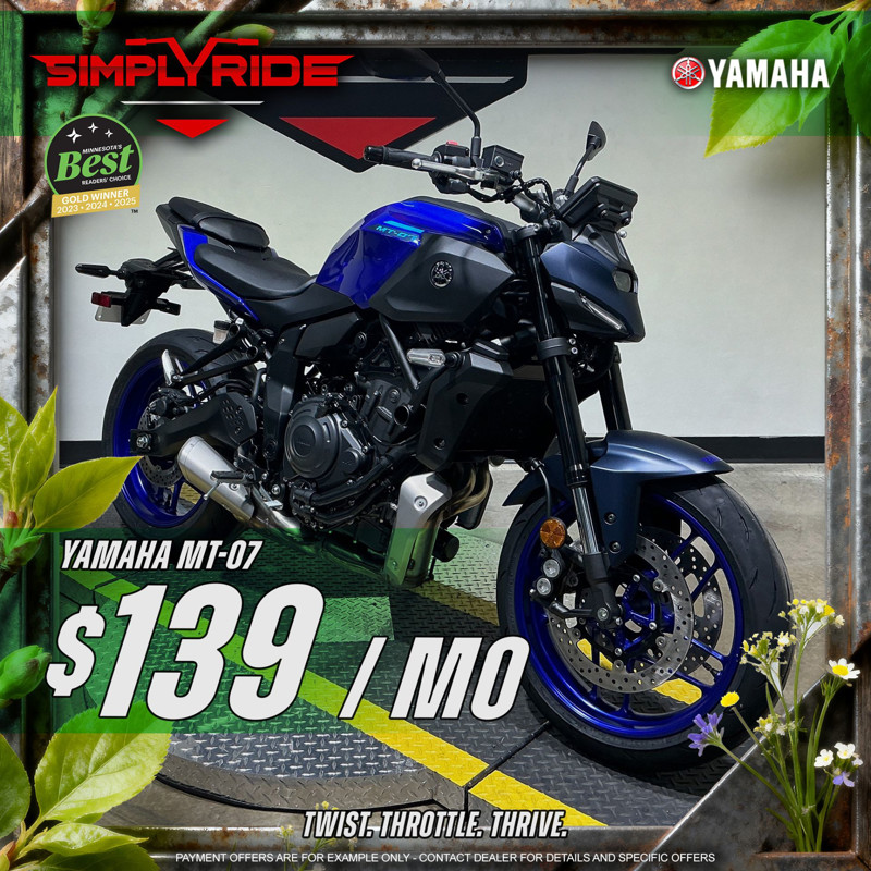 The MT-07 is the highest specification yet, including new radially mounted front brake calipers, 41 mm inverted forks, lightweight SpinForged wheels and striking next-generation MT styling.