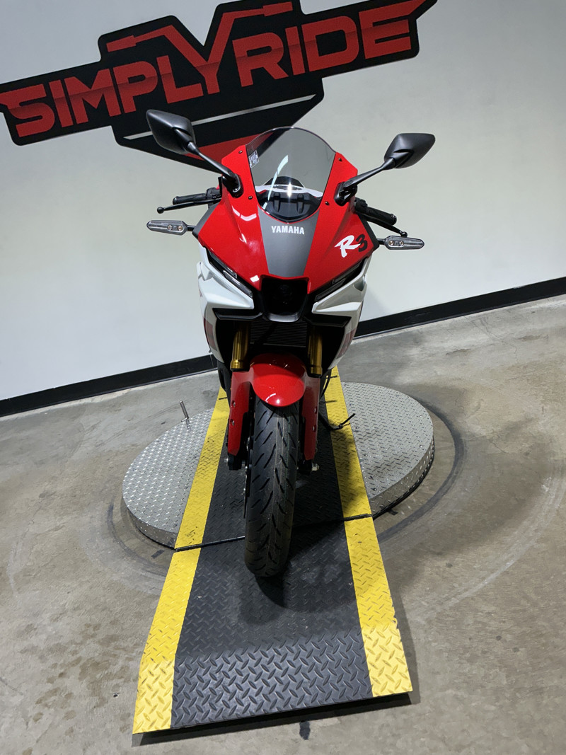 Yamaha's celebrated entry into R World, the YZF-R3 is powered by a high-revving 321cc engine with an emphasis on lightweight, nimble handling and real-world practicality. A perfect choice for everyone from beginning riders to experienced track day enthusiasts, the R3 strikes the right balance of thrilling Supersport performance and everyday comfort in a fun, sporty package that shows off its distinctive R-Series pedigree from every angle.