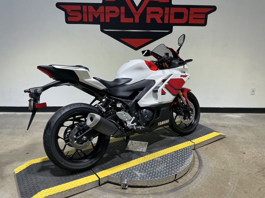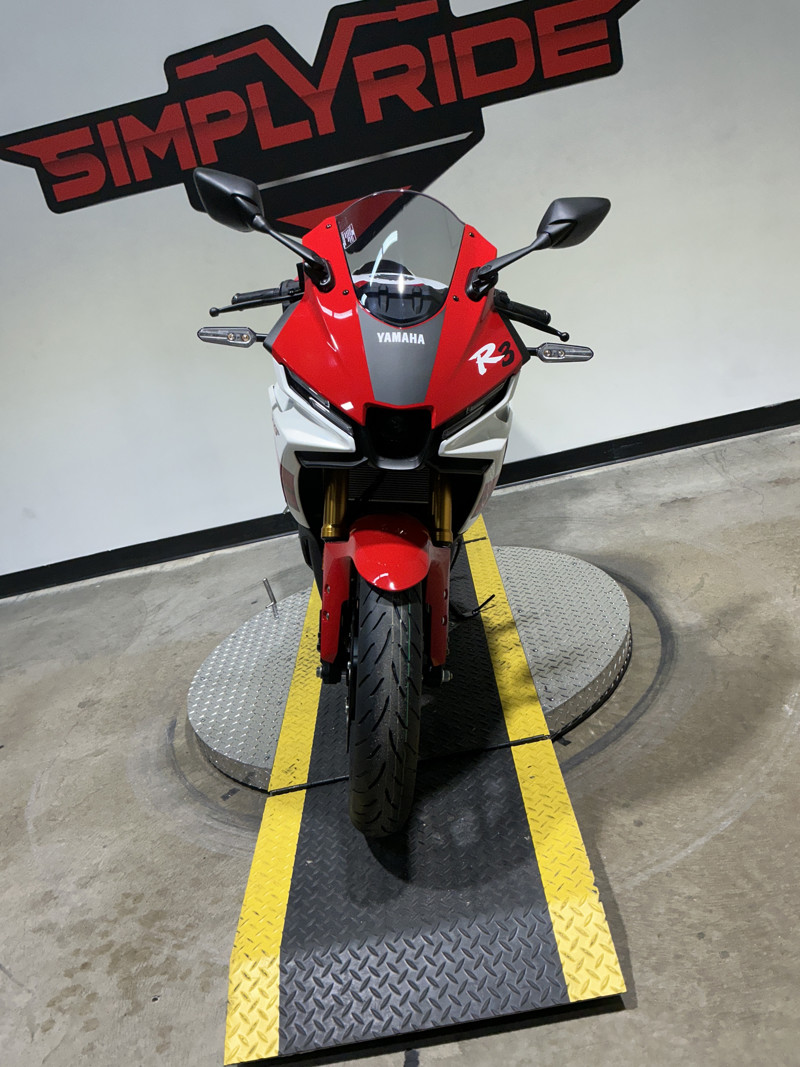 Yamaha's celebrated entry into R World, the YZF-R3 is powered by a high-revving 321cc engine with an emphasis on lightweight, nimble handling and real-world practicality. A perfect choice for everyone from beginning riders to experienced track day enthusiasts, the R3 strikes the right balance of thrilling Supersport performance and everyday comfort in a fun, sporty package that shows off its distinctive R-Series pedigree from every angle.